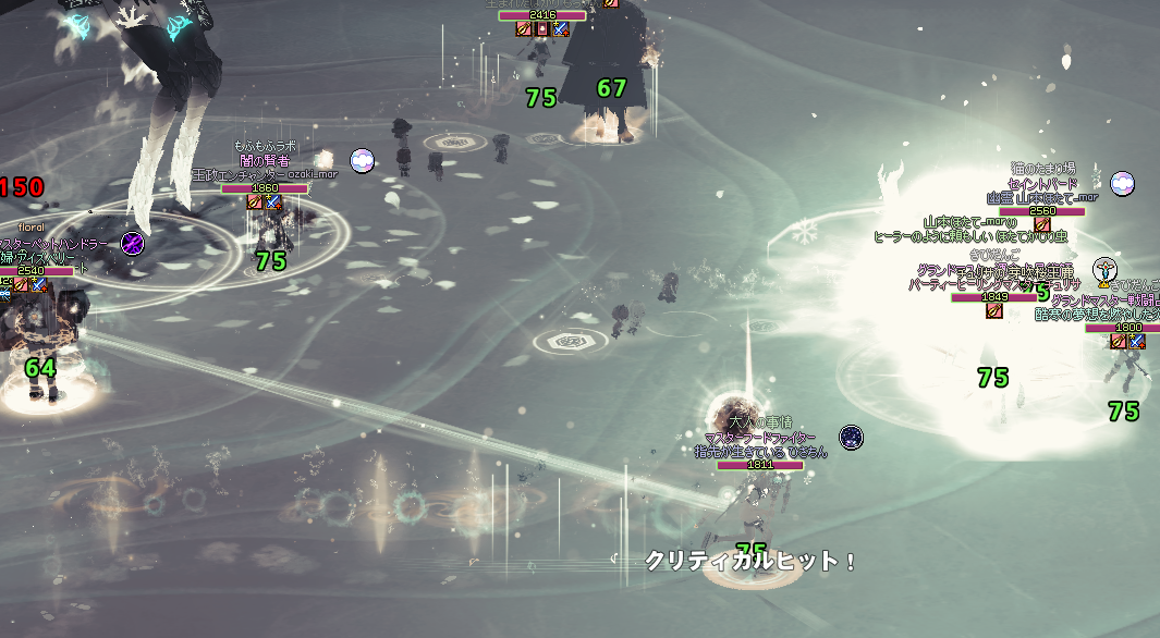 浄化の鼓動・生命のベール・シールドオブトラストなどで硬直耐性をつけてからリンクします。ペットを死なさないよう注意しましょう。 - クジラの浄化の波(昼組)