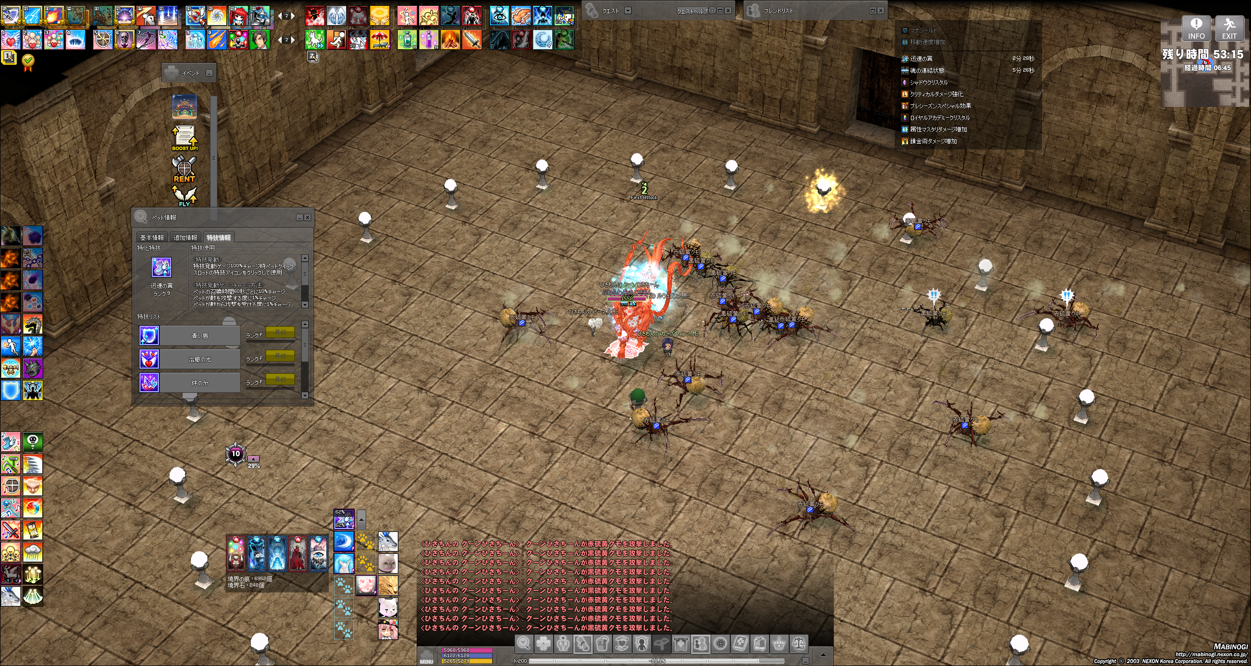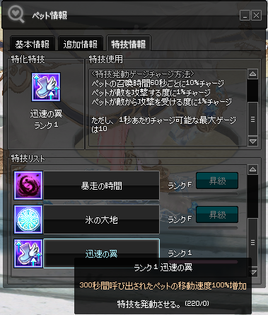 ・ペット召喚時間・ペット攻撃・ペット被弾などで特技ゲージが貯まる。